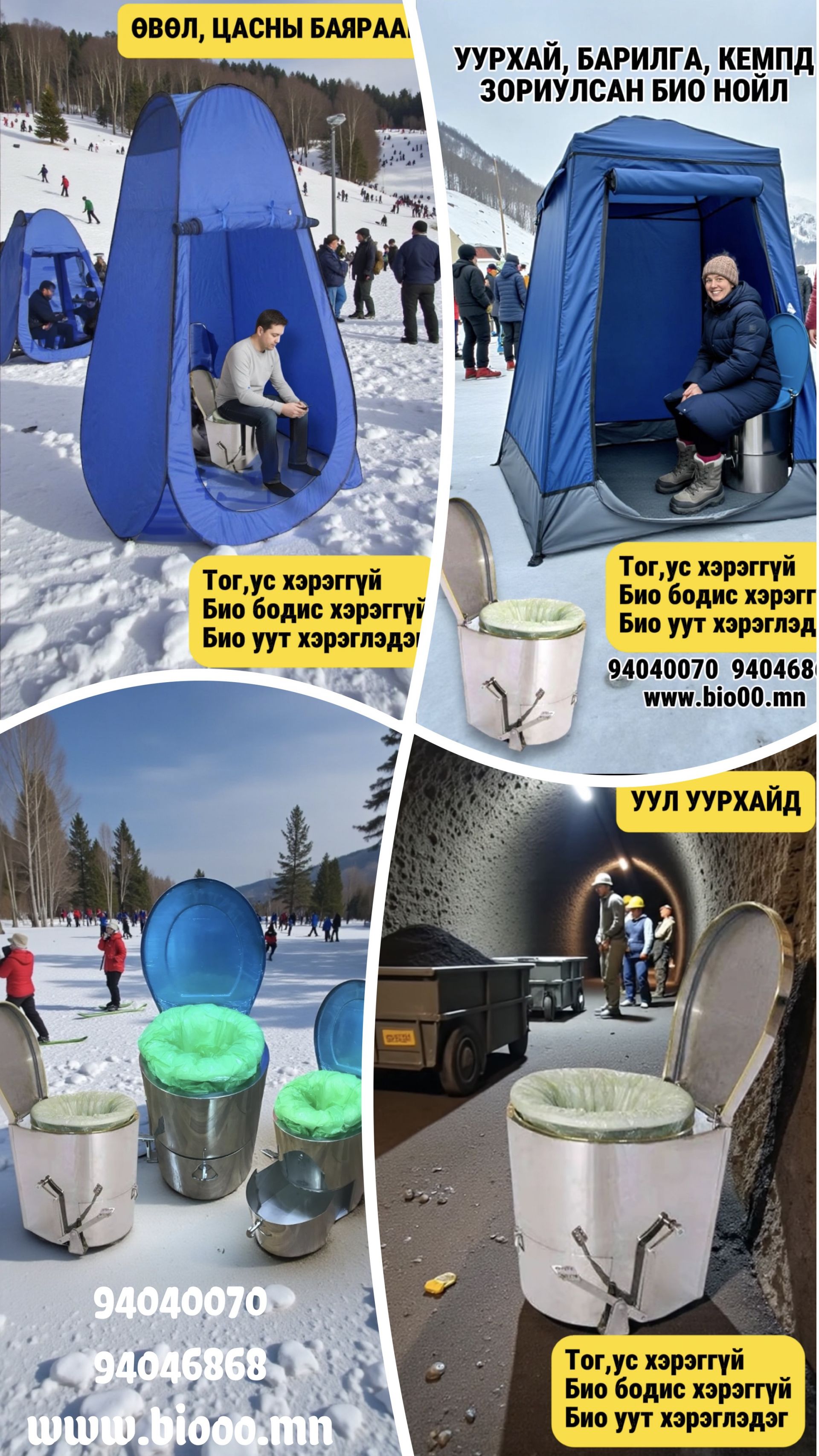 Био нойлийн бохирын сав дүүрмэгц бохирыг гялгар ууттай нь хамт асгана. Бохир өөрөө байгальд задарч алга болно.